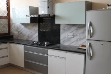 It is a slight modification of a Line Kitchen but gives you extra space for storage and mounting your appliances or kitchen wares. The extended smaller leg of your L-Shaped kitchen is ideal for turning into a small dining mount too. All you need to do is to put a couple of chair, like one or two on the other end of the smaller leg. Or you can install your L-Shaped kitchen using two adjacent walls which will give you extra storage options and lot of free space to work on and experiment with. Just like the Line Kitchen, L-Shaped kitchen too is compact and smart enough to be installed into your fully furnished living room. You can organize a small get together or tea party and attend your guest’s right from your kitchen. It’s all comfortable as well as smart option for medium size rooms.