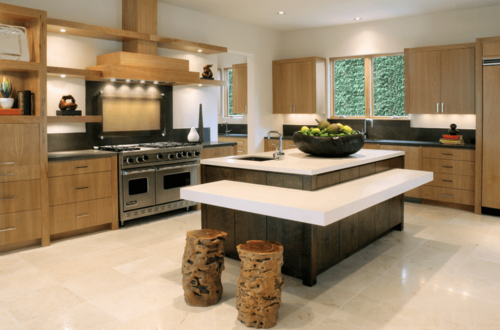 This kitchen type is for the houses which have large kitchen space. If you have area big enough to adjust a six seater dining mount, Then Island kitchen type is perfect for your kitchen. Storage and space is never the question but it is all about style and grand look. This gives an impression of a lavish lifestyle absolutely suitable for people who like to throw parties or love gatherings in their homes. Island kitchen as the name suggests has the dining mount in between the work area. Most of the spaces around your dining mount are occupied by sleek cabinets and stylish customization and kitchen decors. This kitchen type is also recommended for heavy duty kitchens. Ideal for small parties and get-together, an Island Kitchen also opens a lot of scope for experimentation with kitchen interior looks and themes.